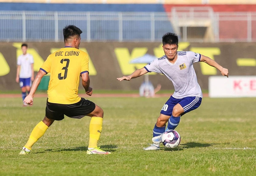 Lê Quốc Nhật Nam (áo trắng) của CLB Bóng đá Huế được HLV Philippe Troussier triệu tập |