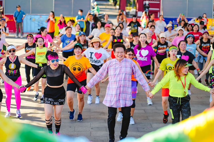 | Giám đốc Sở Văn hóa & Thể thao Phan Thanh Hải (giữa) hòa mình trong vũ điệu Zumba sôi động |