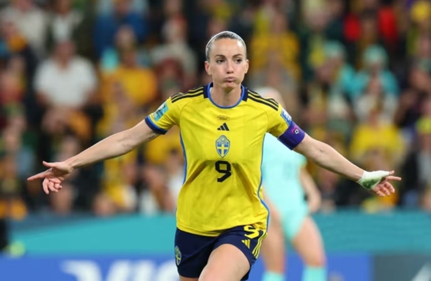 | Fridolina Rolfo thực hiện thành công quả phạt đền để đưa Thụy Điển vươn lên dẫn trước. Ảnh: Getty Images |
