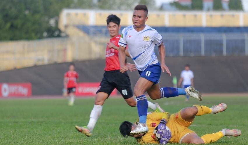 | Người đi qua nhưng bóng đành phải ở lại. Ảnh: CLB Bóng đá Huế |