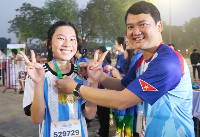 Nụ cười hạnh phúc khi cùng nhau hoàn thành cự ly chạy