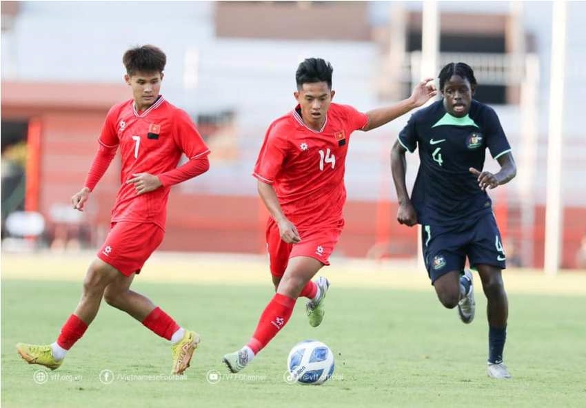 | Tranh bóng khéo léo trước các cầu thủ U19 Australia. Ảnh: CLB Huế |