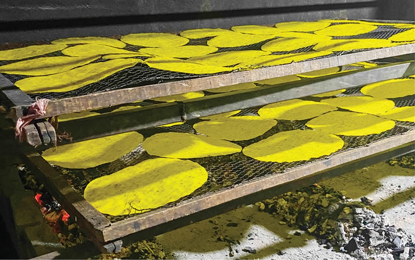 | Sau khi tráng và hấp chín, bánh được mang phơi nắng cho khô |