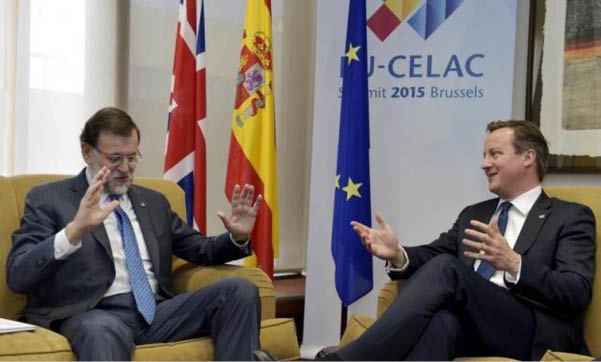 Thủ tướng Anh David Cameron (phải) trong một cuộc hội đàm với Thủ tướng Tây Ban Nha Mariano Rajoy. Ảnh: Reuters.