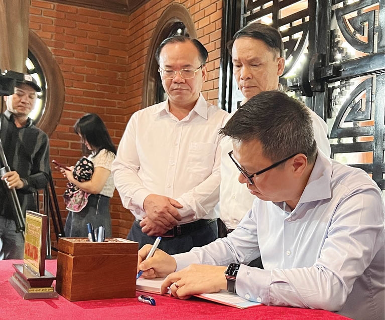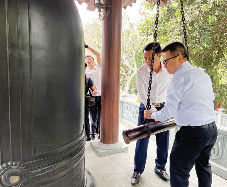 | Lãnh đạo Hội NBVN thỉnh chuông và ghi lưu niệm tại Nhà tưởng niệm Chủ tịch Hồ Chí Minh |