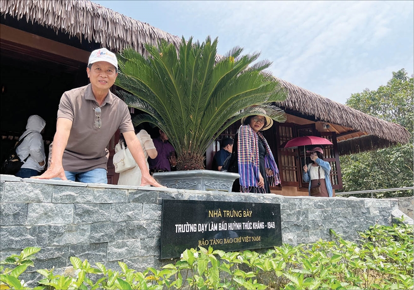 | Thăm Trường dạy làm báo Huỳnh Thúc Kháng. Trường ra đời ngày 4/4/1949 từ sự chỉ đạo của Chủ tịch Hồ Chí Minh, là cơ sở đào tạo báo chí đầu tiên của báo chí cách mạng Việt Nam. Nhà báo Đỗ Đức Dục làm Giám đốc, nhà báo Xuân Thủy làm Phó Giám đốc, Như Phong, Đỗ Phồn, Tú Mỡ là Ủy viên Ban Giám đốc. Các đồng chí Trường Chinh, Võ Nguyên Giáp, Hoàng Quốc Việt, Lê Quang Đạo, Tố Hữu, Trần Huy Liệu, Tú Mỡ, Xuân Diệu, Nguyễn Xuân Khoát, Nguyễn Huy Tưởng, Thế Lữ, Nguyễn Tuân, Nguyễn Đình Thi, Nam Cao… làm giảng viên. Trường chỉ kéo dài ba tháng, từ 4/4 đến 6/7/1949 nhưng đã đào tạo 42 học viên - những cây bút chủ lực, có nhiều đóng góp trong sự nghiệp kháng chiến kiến quốc và xây đắp nền báo chí nước nhà. Điểm di tích này được Hội NBVN phối hợp cùng tỉnh Thái Nguyên trùng tu, tôn tạo vào năm 2024 |