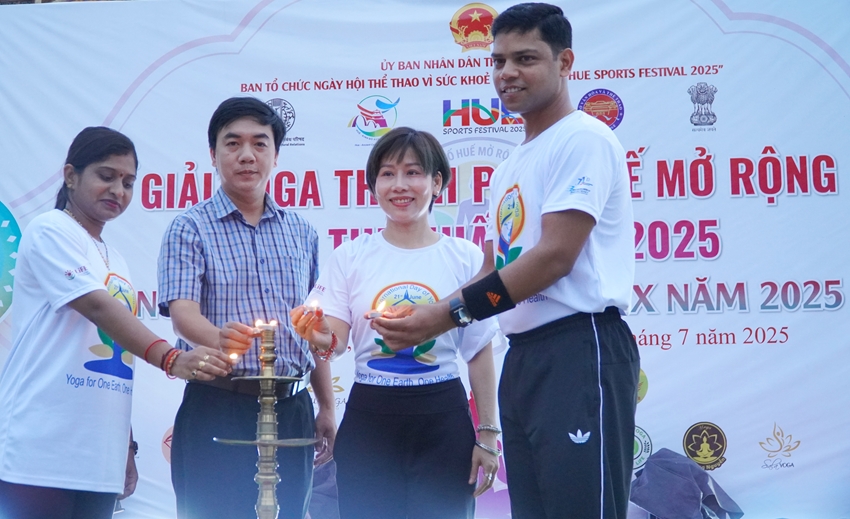 Hoạt động hưởng ứng Ngày quốc tế Yoga lần X – 2025 diễn ra sáng 13/7 tại quảng trường đối diện Trường THPT chuyên Quốc Học Huế. Sự kiện do CLB Yoga Linh Kha phối hợp Đại sứ quán Ấn Độ tại Việt Nam tổ chức.