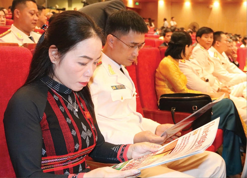 | Đại biểu tranh thủ xem thông tin trên Huế ngày nay trong giờ giải lao |