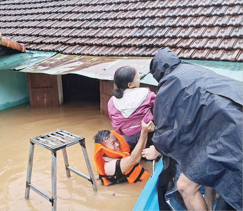 | Lực lượng chức năng hỗ trợ người dân vùng thấp trũng |