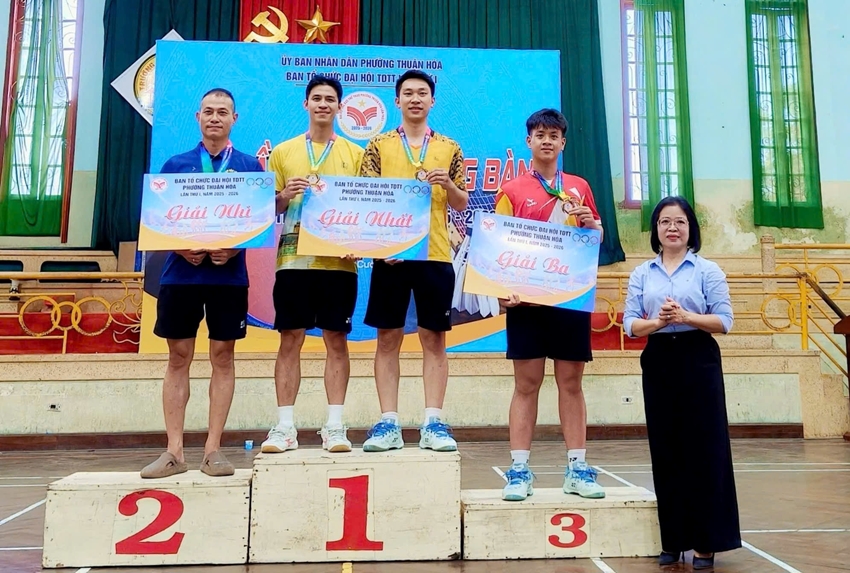 | Lãnh đạo phường Thuận Hóa trao giải cho các vận động viên |