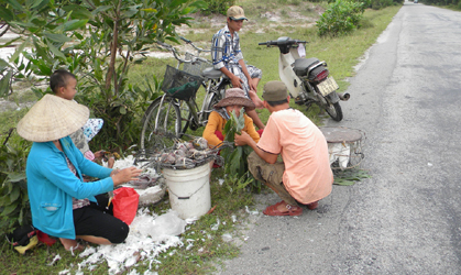 Một người bán chim cò, cói bên đường ra cảng Chân Mây mà mấy đứa trẻ trong vùng gọi là bà Lan giải thích, muốn bắt được chim, người đánh chim phải nắm được tập quán, thói quen của chim. Mùa này vừa thu hoạch lúa xong, rất thuận lợi cho việc bẫy chim ở các cánh đồng hoặc ở bãi sông, bụi rậm vì ở đó chim hay về nghỉ. Hỏi mỗi ngày dì bán bao nhiêu con, bà Lan trả lời: “Ngoài QL 1A qua xã Lộc Thuỷ bán nhiều lắm, còn ở đây đường vắng chỉ 50 con/ngày; giá 20 nghìn đồng/con”. Thế việc săn bắt chim có ai ngăn cản gì không?. “Là nghề kiếm sống, không thấy ai ngăn chặn; chưa thấy ai bị xử lý nên vẫn hành nghề”, bà Lan nói vô tư.