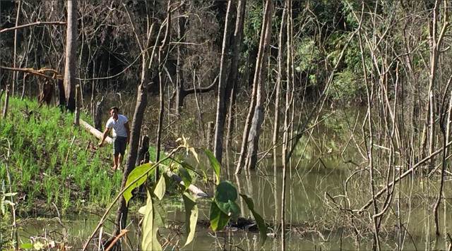Ông Nghiêm bên diện tích cây cối bị chết do ngập (như ông phản ánh)