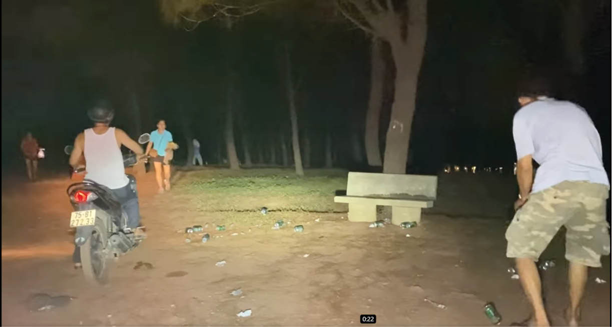 Nguyệt thực kết thúc và cuộc vui cũng đến lúc tàn, các nhóm lần lượt rời đi. Tuy nhiên, trong số những nhóm biết ý thức gom rác bỏ vào nơi quy định, thì cũng có nhóm đã dời gót với nguyên “bãi chiến trường” sau lưng với nào vỏ lon, bao ni lông, giấy loại. “Không may” cho họ, đúng lúc này thì anh Trương Vững đi đến, thấy thế anh đã lên tiếng yêu cầu phải quay lui dọn dẹp. “Uống xong dọn đàng hoàng mà về chơ ai chơi ri? Chơi ri lần sau mần răng mà chơi?!!”- Chất giọng Huế mộc mạc, nhẹ nhàng, có tình có lý và không thiếu phần cương quyết, Trương Vững đã buộc người của nhóm kia phải quay lại “khắc phục hậu quả”. Anh Thanh Mãi có mặt lúc ấy đã kịp ghi hình và tung đoạn clip này lên trang Facebook cá nhân. Nhiều người vào xem đã hoan nghênh thái độ của Trương Vững và gay gắt phê phán lối hành xử thiếu văn minh của nhóm người vô ý thức kia.