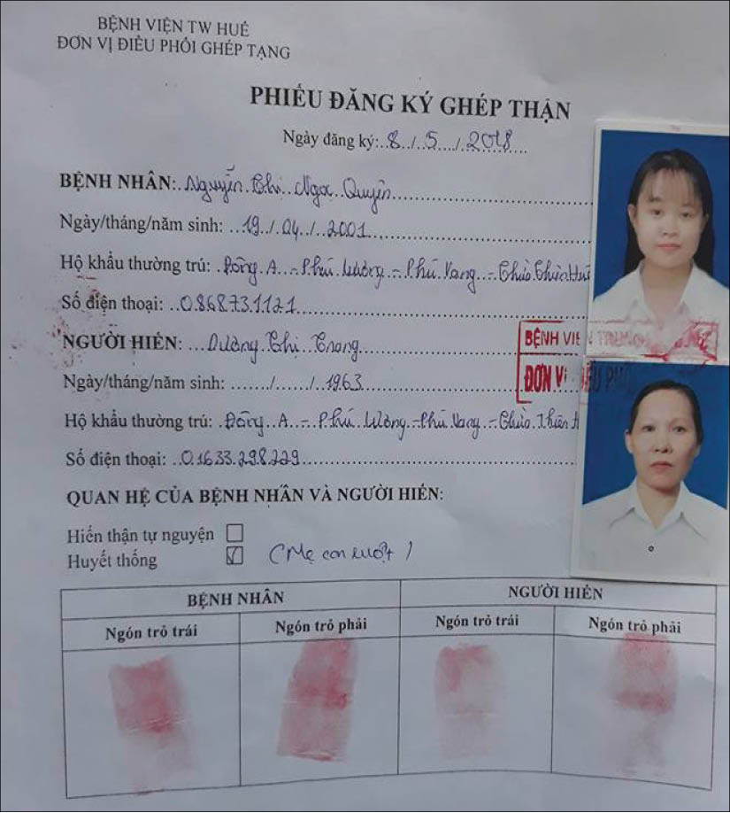 Trên giường bệnh tại phòng bệnh số 3, Khoa thận, Bệnh viện Trung ương Huế, cô bé với gương mặt phù nề, nhòa nước mắt vì đang cố gắng kìm nén không kêu rên bởi cơn đau sau buổi chạy thận nhân tạo, khiến người xung quanh xót xa. Ở đây ai cũng chung cảnh ngộ. Nhưng Quyên còn quá trẻ. Em mới 17 tuổi, cái tuổi đang đến trường với biết bao ước mơ về tương lai. Vậy mà căn bệnh quái ác, nguy hiểm có thể cướp đi cuộc sống của em bất cứ lúc nào. Mẹ Quyên, chị Dương Thị Trang (55 tuổi), vì giành giật sự sống cho con, sẵn sàng hiến 1 quả thận. Người phụ nữ gầy gò, nhỏ thó, run run chìa xấp giấy tờ thủ tục, các xét nghiệm đã làm, cần phải làm của người hiến thận, nghẹn ngào: “Tui sẵn sàng cắt 1 quả thận của mình cho con, nhưng tiền chi phí để ghép thì…”