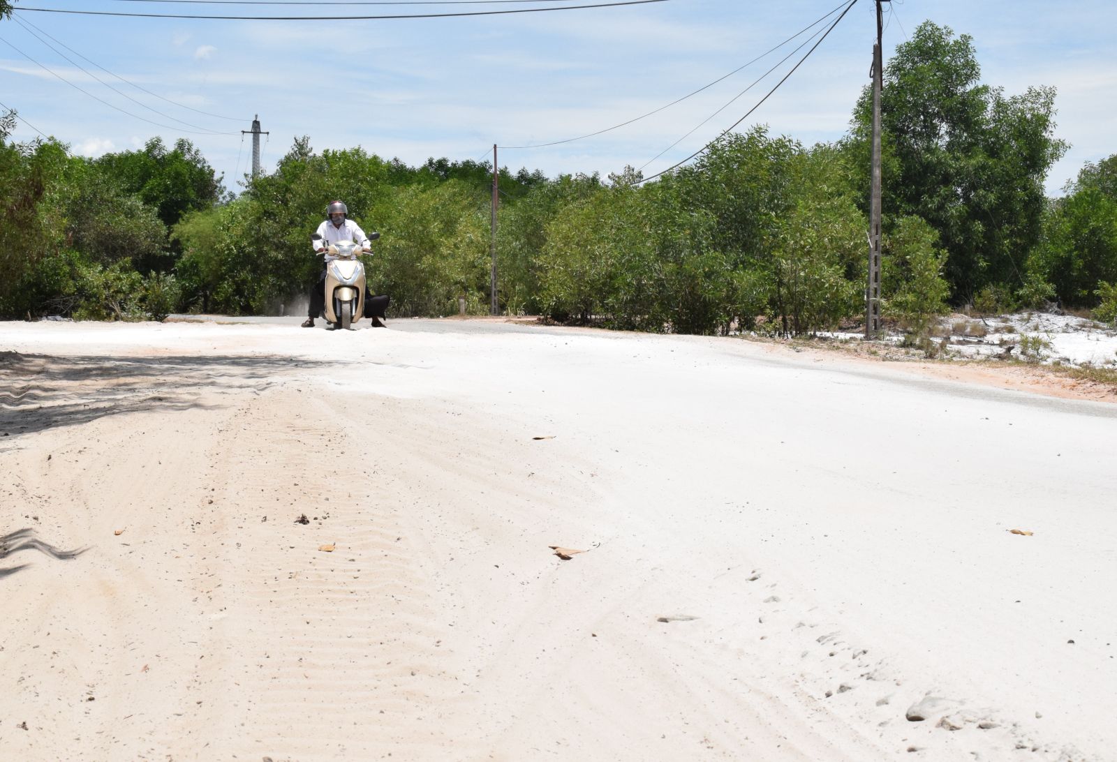 Người tham gia giao thông rất e ngại khi qua đoạn đường bị phủ đầy cát