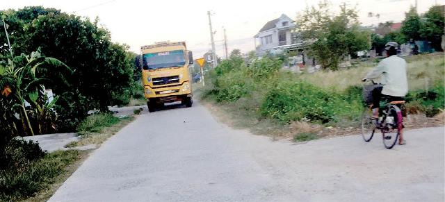 Theo người dân, đường liên thôn mới được xây dựng và đang thi công mở rộng. Đường chỉ cho phép xe trọng tải từ 8 tấn trở xuống lưu thông, nhưng nhiều xe chở vật liệu xây dựng với trọng tải gấp 3 đến 4 lần chạy sẽ khiến đường mau xuống cấp, hư hỏng…
