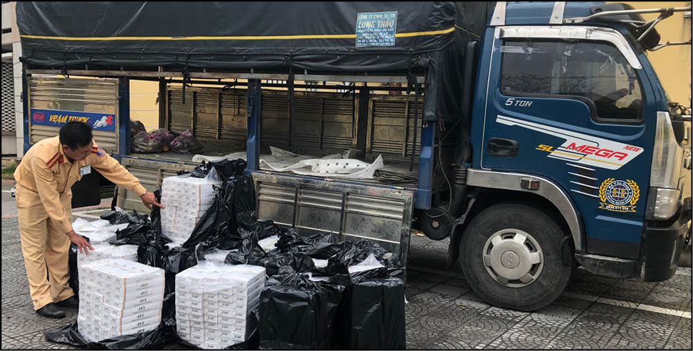 Lực lượng CSGT phát hiện xe ô tô vận chuyển 10 nghìn gói thuốc lá không có hóa đơn chứng từ