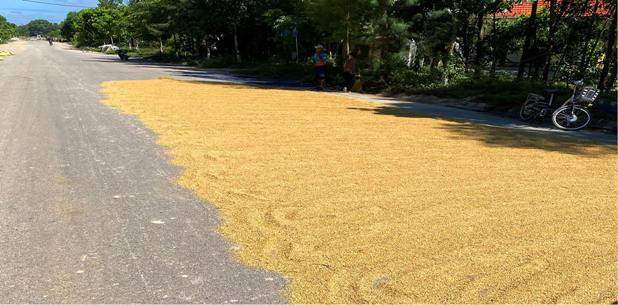 Vào thời điểm thu hoạch, thực trạng người dân phơi lúa lấn chiếm lòng, lề đường gây mất an toàn giao thông là thực trạng từ rất lâu và không chỉ riêng ở TX. Hương Thủy. Tuy nhiên, đây cũng là bài toán chưa có lời giải với một bên là nhu cầu thực tế và một bên là diện tích đất dành cho hoạt động này.