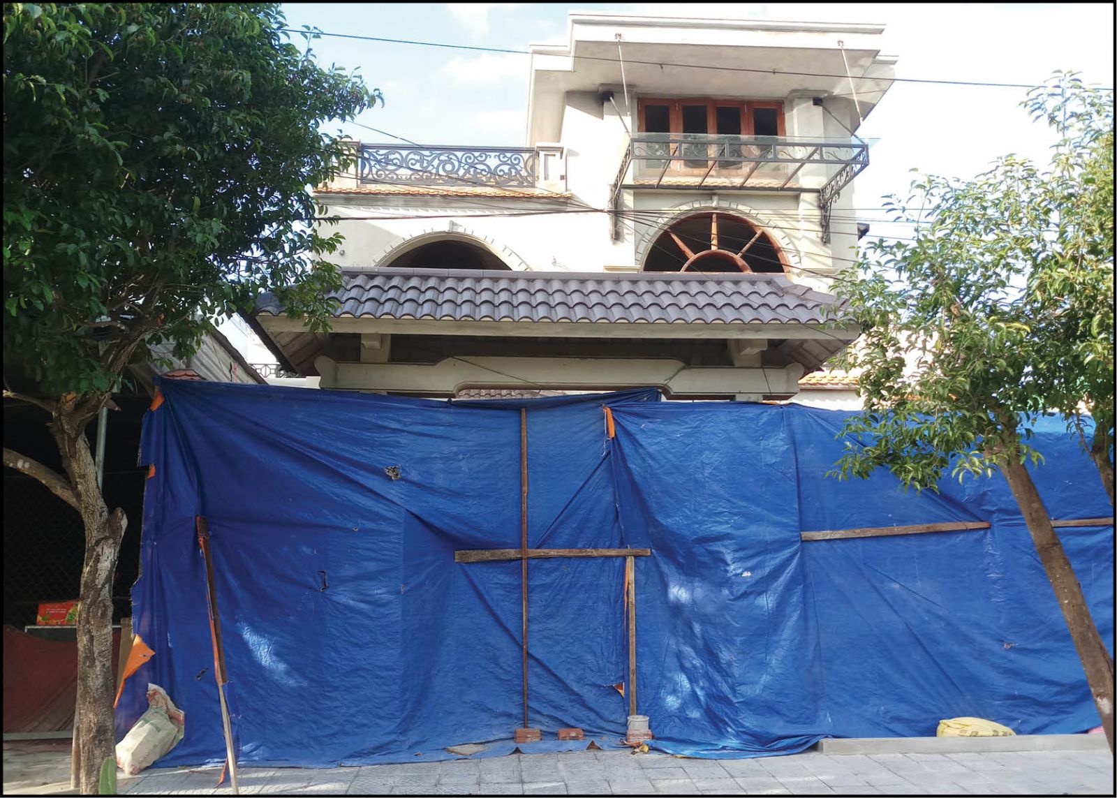 Ngôi nhà xây dựng tại 27B Trần Văn Kỷ đã gần hoàn thiện và lấn chiếm phần không gian hệ thống thoát nước phía sau