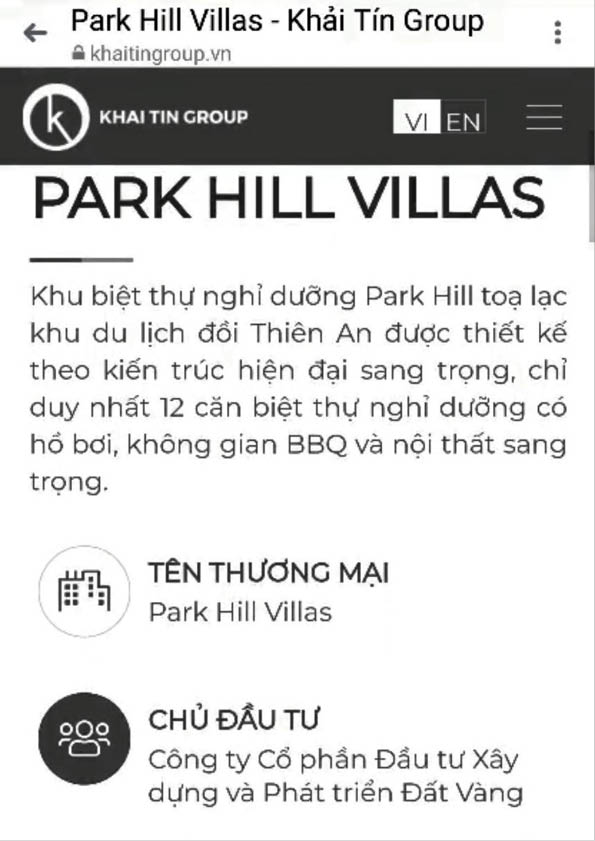 Thời gian qua, trên website khaitingroup.vn xuất hiện quảng cáo sai sự thật về “dự án” Park Hill Vilas.