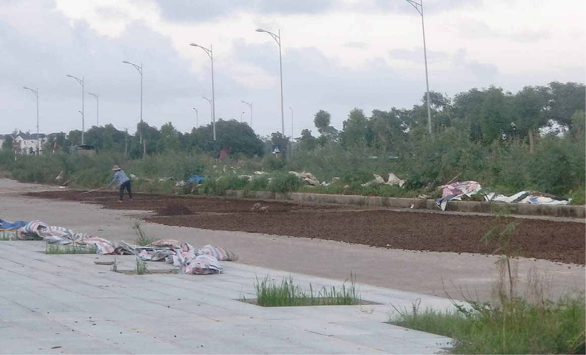 Theo người dân xung quanh, việc phơi phân gia súc trên tuyến đường ấy tồn tại từ khá lâu, nắng phân được trải ra phơi, mưa thì lấy bạt che lại từng đống. Khu vực ấy cũng là nơi thường xuyên tản bộ của cư dân ở khu đô thị.