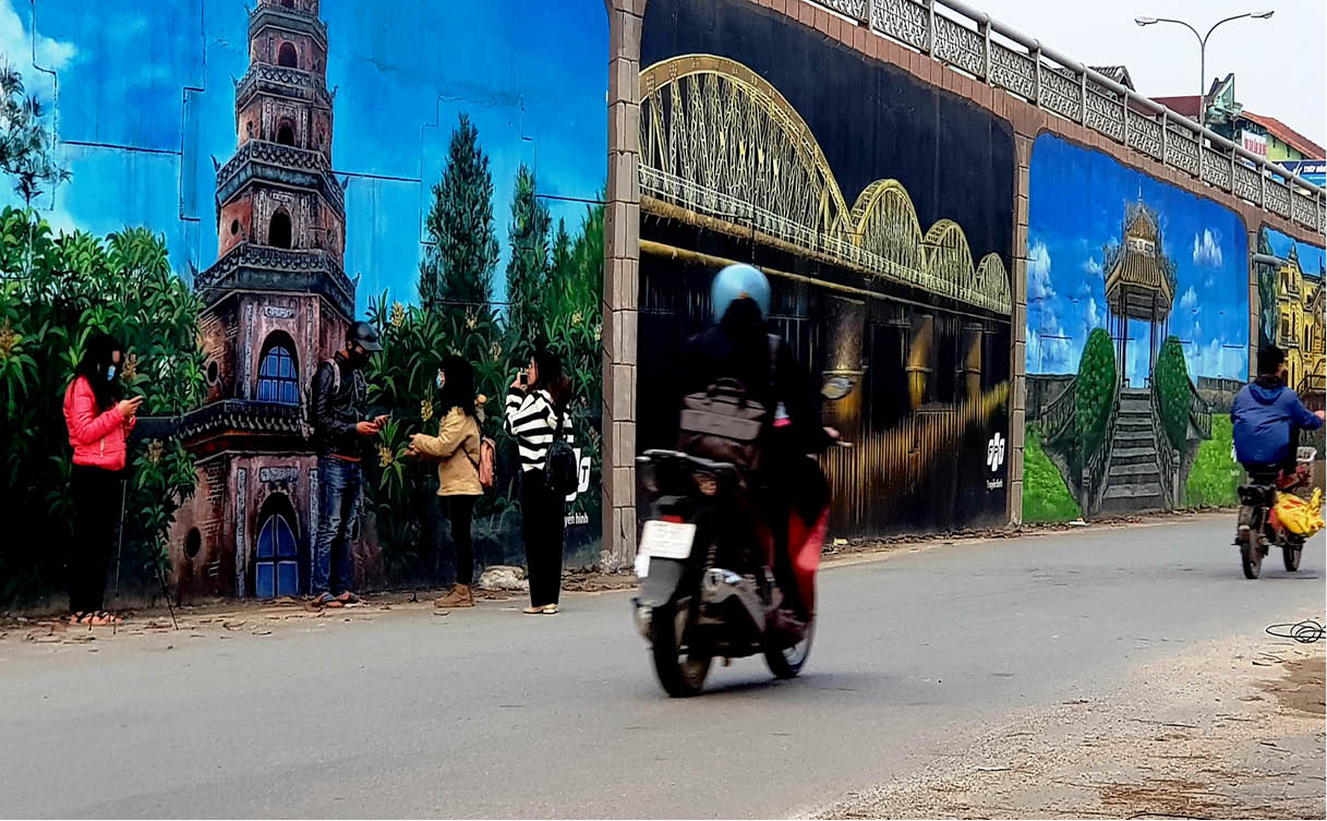 HNN - Nhiều tuyến đường bích hoạ được hình thành, tạo không gian mới lạ thu hút nhiều người tìm đến dạo chơi, chụp hình. Tuy nhiên, một số con đường bích họa không có vỉa hè, dẫn tới tình trạng mất an toàn, gây nguy hiểm cho người chụp hình.