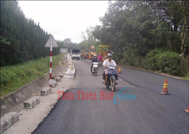 Thực tế hiện trường, chúng tôi nhận thấy, nếu đơn vị thi công không sớm hoàn thành mặt đường ngang bằng với những tấm đan đã thi công thì sẽ rất gây nguy hiểm cho người tham gia giao thông khi qua đoạn đường này. Tuy nhiên, khi chúng tôi có mặt, đoạn đường trên đang được Công ty CP Quản lý và Xây dựng Đường bộ Thừa Thiên Huế triển khai thi công thảm nhựa mặt đường…