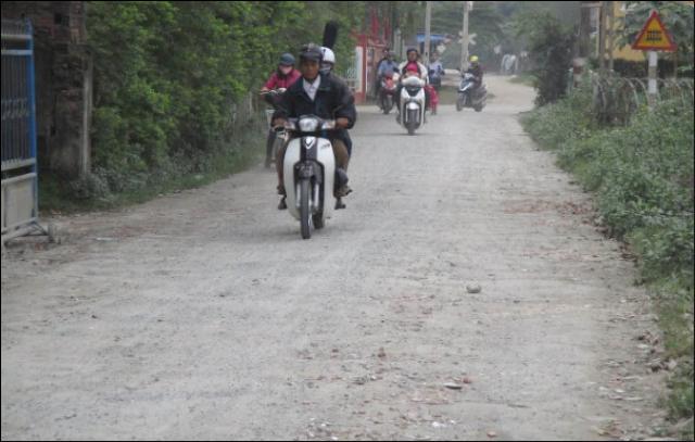 Thấy vậy, người dân ở gần đó đã đem vật liệu xây dựng đến lấp ổ gà, tuy nhiên sau một thời gian thì đống sỏi mềm ra, xe cộ chạy qua lại làm bụi bay tứ tung.