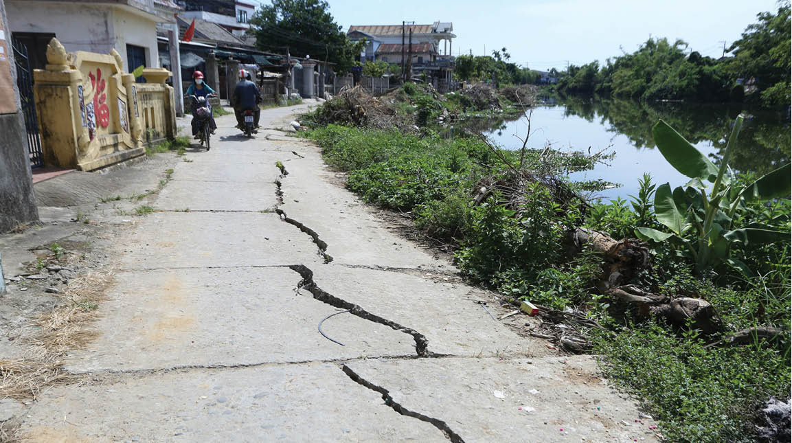 HNN - Đường ở thôn Phò An, xã Phú Dương, TP. Huế, chạy dọc nhà dân dài khoảng 900m, xuất hiện nhiều điểm nứt bể xuống cấp, sạt lở suốt gần chục năm nay.