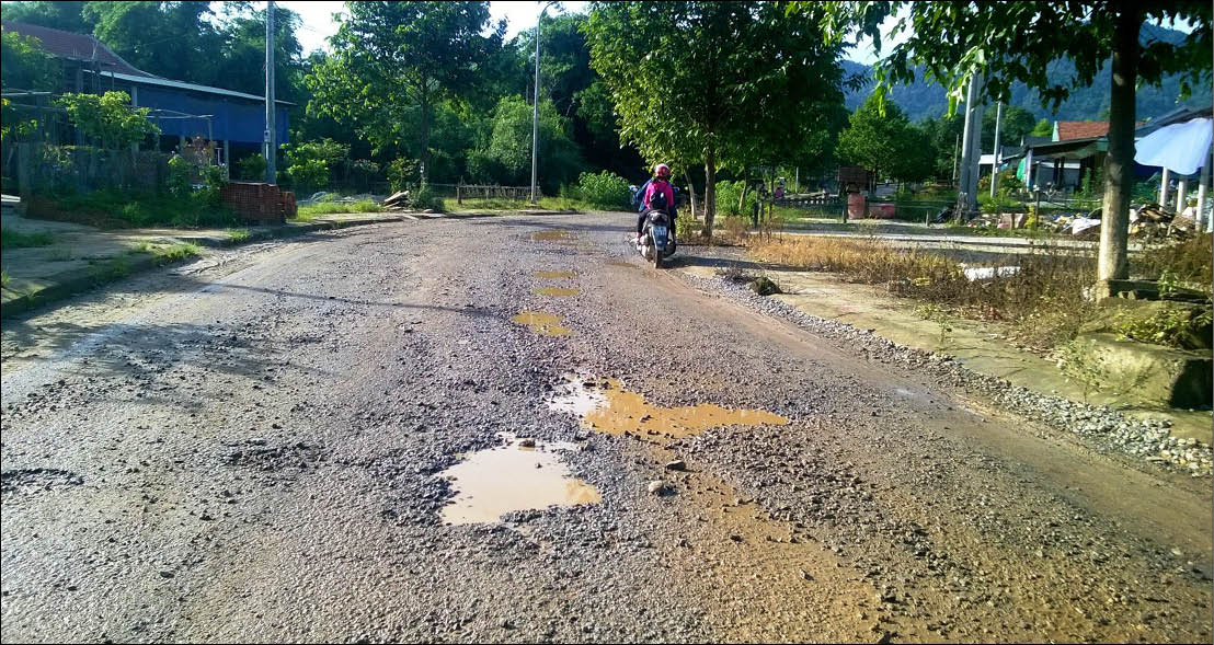 Nền đường hư hỏng nặng gây khó khăn cho người tham gia giao thông