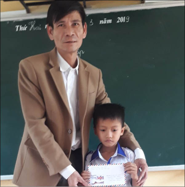Thay mặt nhà hảo tâm, thầy giáo Hồ Huấn, Hiệu trưởng Trường TH Vinh Hà đã trao số tiền trên cho em Hải Đăng và nhờ Quỹ Sen Xanh gửi lời cảm ơn sâu sắc đến anh Phan Sự.