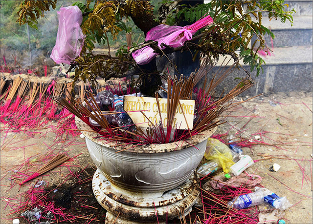 Thực trạng này không khó thấy ở nhiều ngôi chùa vào những ngày lễ lớn như Tết Nguyên đán, rằm tháng Giêng, Phật đản, Vu lan… Ngoài việc nhắc nhở, các chùa không còn cách nào khác phải tự dọn dẹp những bó hương rực lửa, tràn ra bên ngoài.
