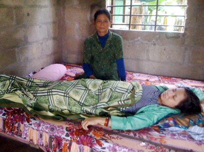 Bà Chín chăm sóc con gái Nguyễn Thị Thu đau liệt giường