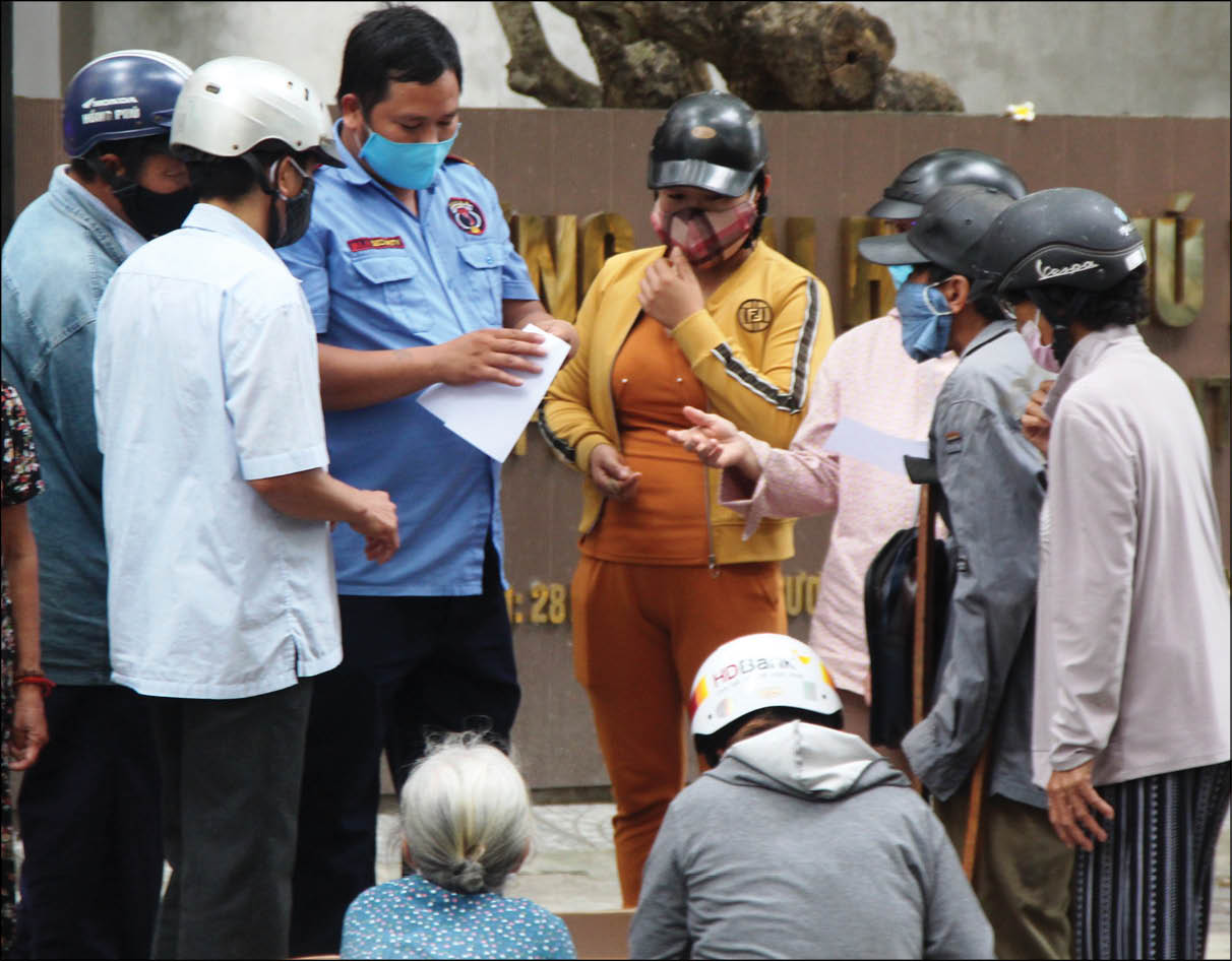 Trước tình cảnh đó, sau những trao đổi nhanh với chính quyền, công an phường sở tại, nhóm thiện nguyện đi đến quyết định, phát giấy để người dân ghi lại thông tin, tên tuổi, địa chỉ và sẽ phát gạo đến tận nhà.
