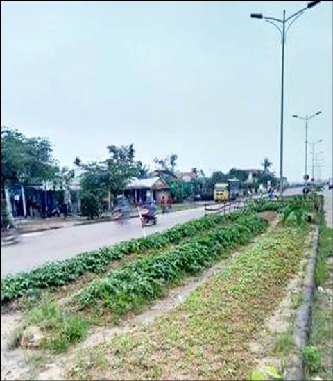 HNN - Khoảng đất trống trên dải phân cách đường Tự Đức- Thuận An qua xã Thuỷ Vân, thị xã Hương Thuỷ do không được vệ sinh nên nhiều đoạn cỏ cây mọc um tùm, rác vứt bừa bãi; nhiều đoạn người dân tận dụng trồng rau...gây nhếch nhác và ảnh hưởng giá trị công trình.