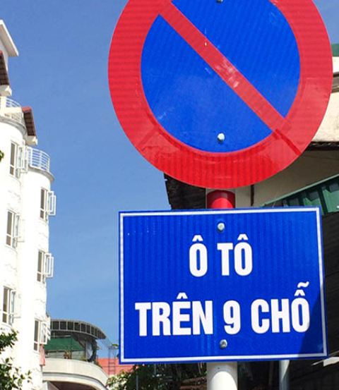 Biển cấm ô tô trên 9 chỗ ở ngay đầu đường