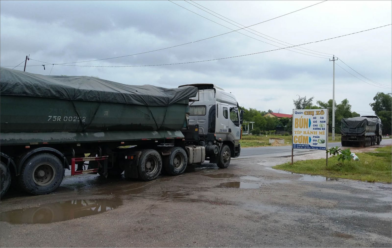 Trong ngày, có hàng trăm lượt xe của Công ty Vận tải Hùng Đạt trung chuyển than từ bãi của Công ty CP Cảng Chân Mây đi qua địa bàn. Các xe đều có trọng tải lớn, chạy tốc độ cao. Mật độ xe chạy càng dày đặc vào buổi trưa do vắng người.
