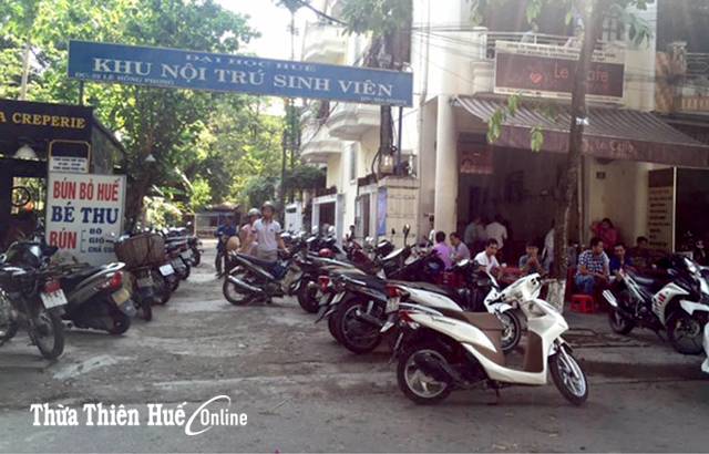 HNN - Lối đi vào Ký túc xá sinh viên Trường đại học Sư phạm trên đường Lê Hồng Phong hơn 1 năm nay trở thành bãi đỗ xe của một quán cà phê.
