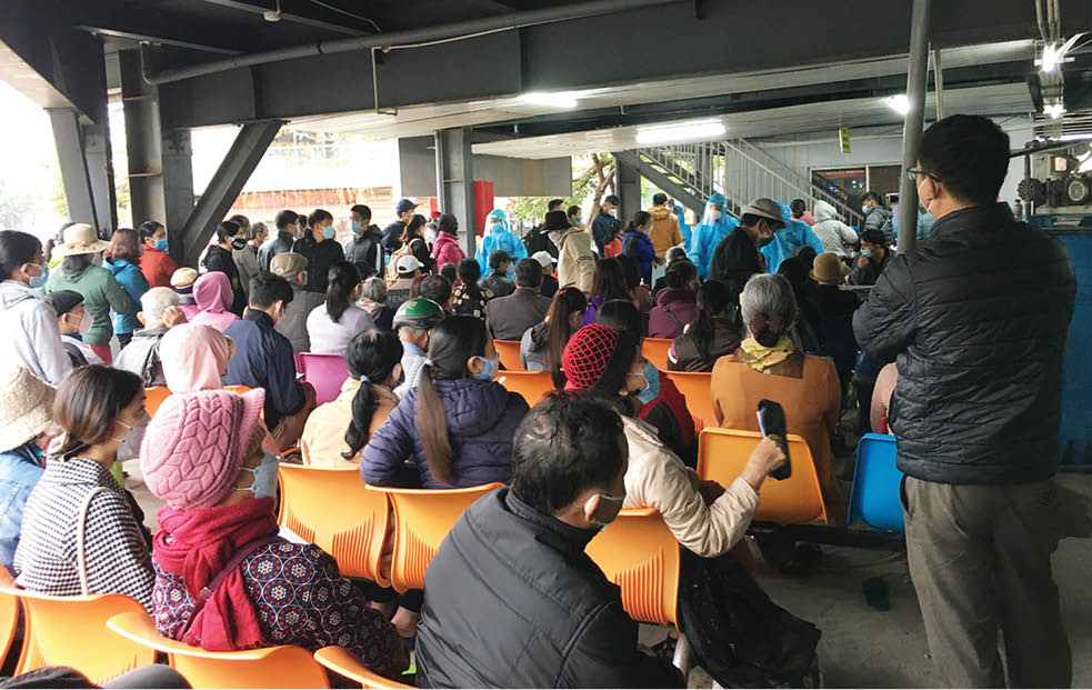 Lo xa thế nhưng số thứ tự được nhận để vào chờ khai báo, test nhanh cũng đã đến 311, nhìn cả đống người đang chầu chực chờ, rất nản, nhưng không thể “cởi” bệnh được, phải chờ thôi. Tiếng người lao xao, tiếng búa đe của công trường đang thi công mở rộng đường Hà Nội sát bên cạnh chan chát, đúng là ô nhiễm âm thanh nên có smartphone cũng không dám lướt mạng để đốt thời gian, sợ đến số mà không nghe thì qua phiên, rất phiền.