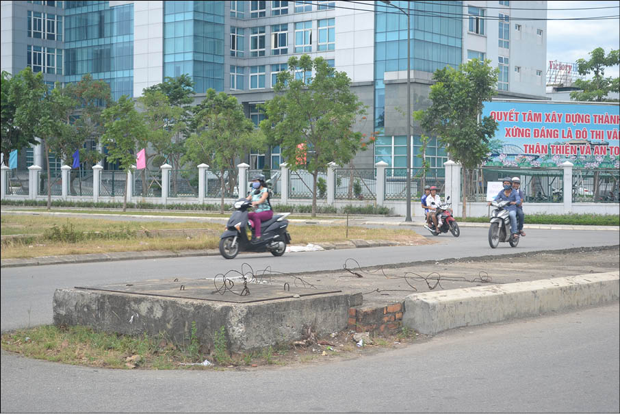 Theo chủ đầu tư, dải phân cách giữa đường Hà Huy Tập cắt ngang đường Tố Hữu rất khó chỉnh trang