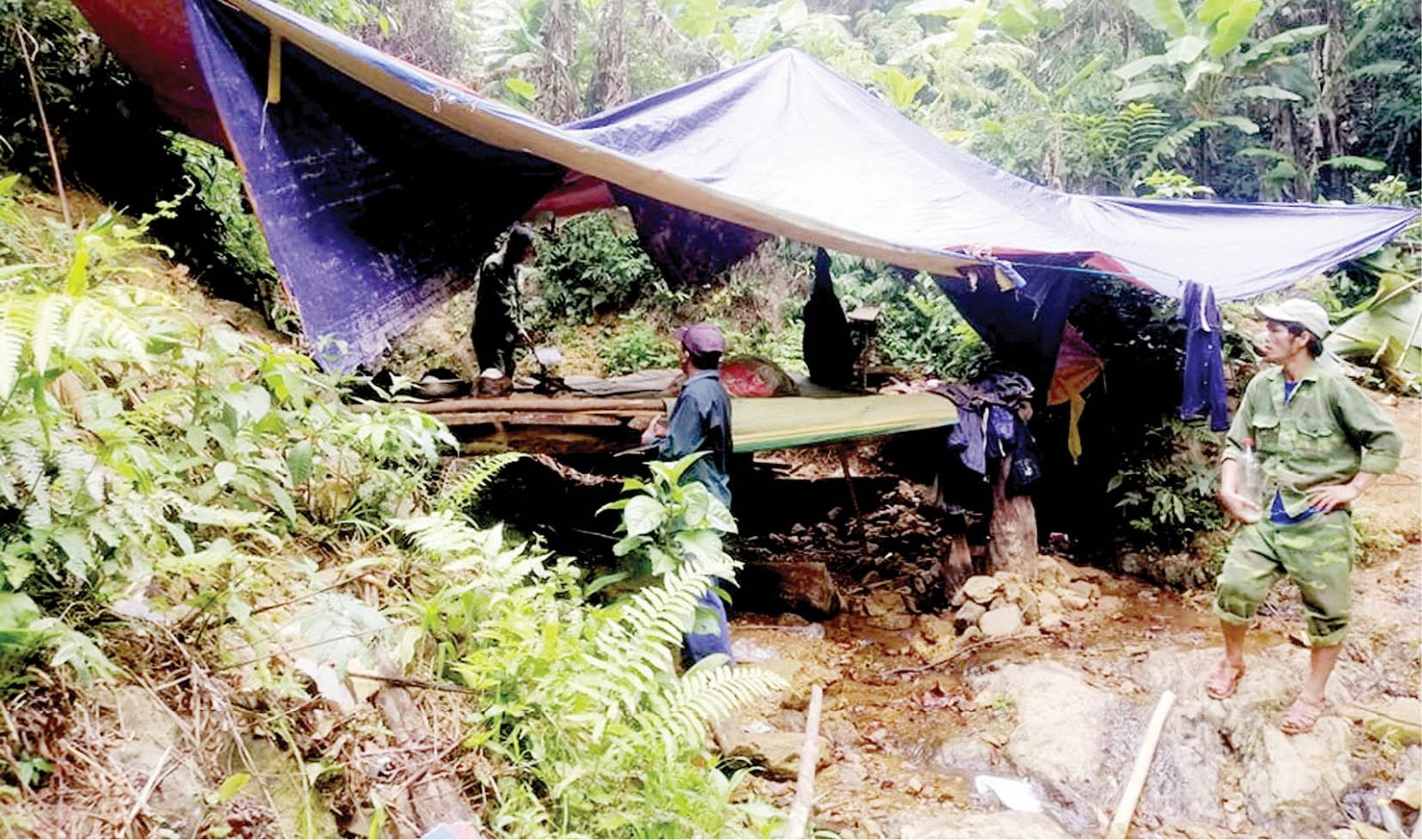 lán trại tạm bợ được người dân dựng để lưu trú trong rừng