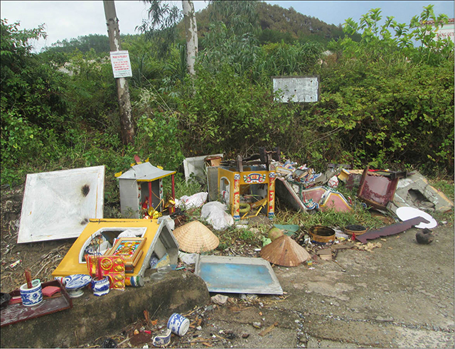 HNN - Những chiếc am thờ đã vỡ vụn nằm bên đường gây phản cảm nhiều người khi đi ngang qua.