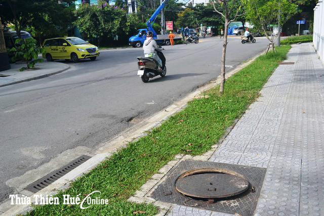 HNN - Gần đây, người đi đường phản ánh, tại đường Nguyễn Hữu Thọ, bên hông Trung tâm Hành chính TP. Huế, có một số hố ga bị lật nắp, khá nguy hiểm.