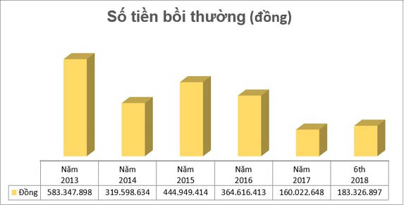 Biểu đồ số tiền khách hàng bồi thường cho công ty qua từng năm. Ảnh do Công ty Điện lực Thừa Thiên Huế cung cấp