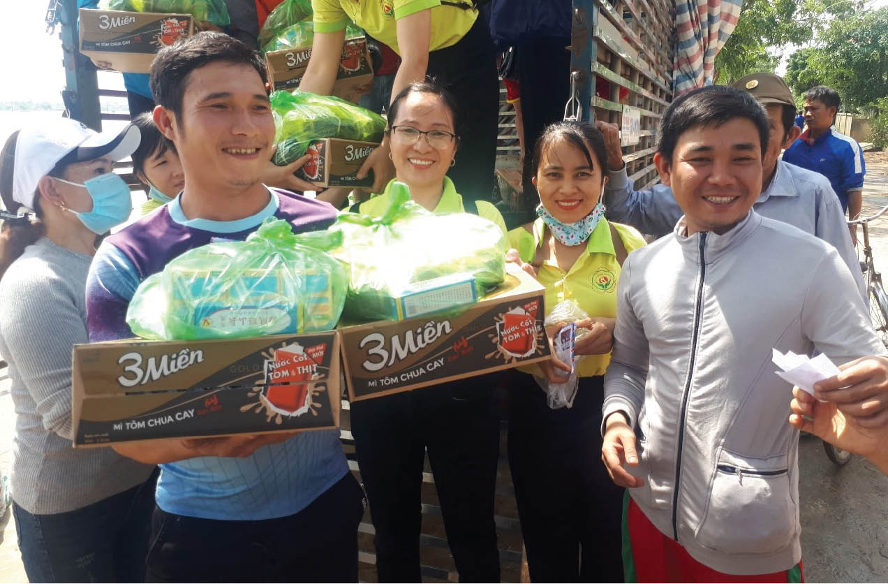Với sự đồng lòng, chung sức của mọi người, 250 phần bánh, sữa tươi và nước suối đã được các cô chuyển đến đến người dân thôn Lợi Nông.