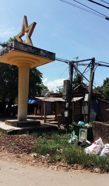 Rác ngay cạnh tượng đài Chiến khu Hòa Mỹ chỉ vài bước chân