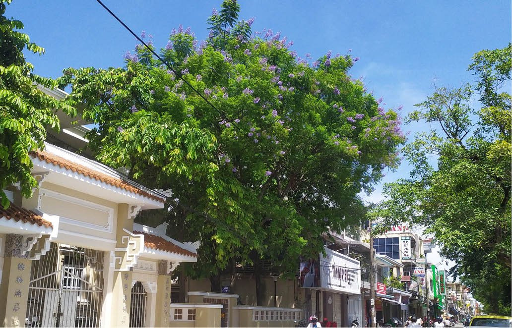 Cây phượng tím đang ra hoa trong khuôn viên trụ sở UBND phường Phú Hoà
