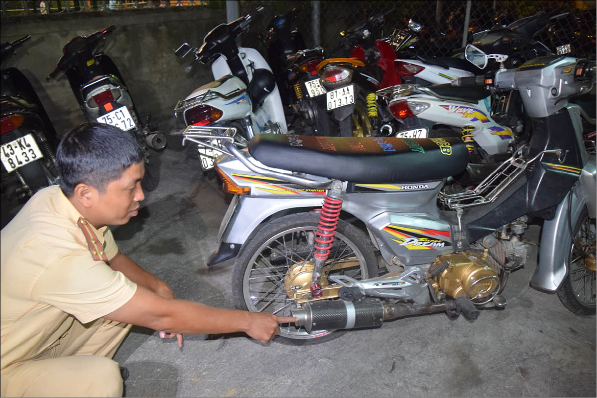 Trung tá Đặng Phúc Xuân- Đội trưởng Đội CSGT - TT Công an TP. Huế cho biết, thời gian gần đây, nổi lên hiện tượng số đối tượng thanh thiếu niên điều khiển xe mô tô không gắn biển số, gắn biển số giả, xe mua chưa sang tên, tự ý thay đổi tổng thành khung, tổng thành máy, bộ phận giảm thanh không đảm bảo qui định… Thông qua mạng xã hội, các đối tượng này đã tụ tập thành từng nhóm, điều khiển xe mô tô chạy thành đoàn với tốc độ lớn, lạng lách, đánh võng, quét chân chống xuống đường, gây mất trật tự ATGT, trật tự xã hội, gây nguy hiểm cho người tham gia giao thông.