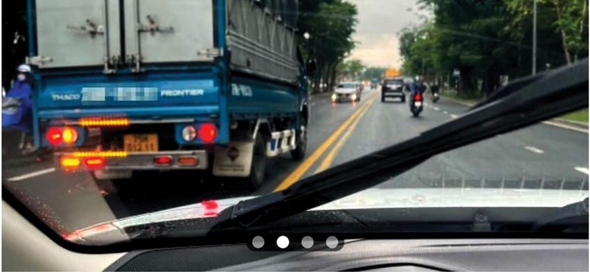 | Xe ô tô tải lấn làn đường được người dân ghi lại hình ảnh gửi đến lực lượng Công an TP. Huế |