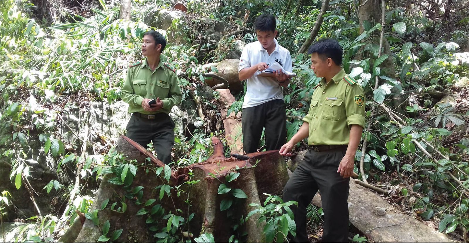 Kiểm lâm kiểm tra hiện trường cây bị đốn hạ tại tiểu khu 57